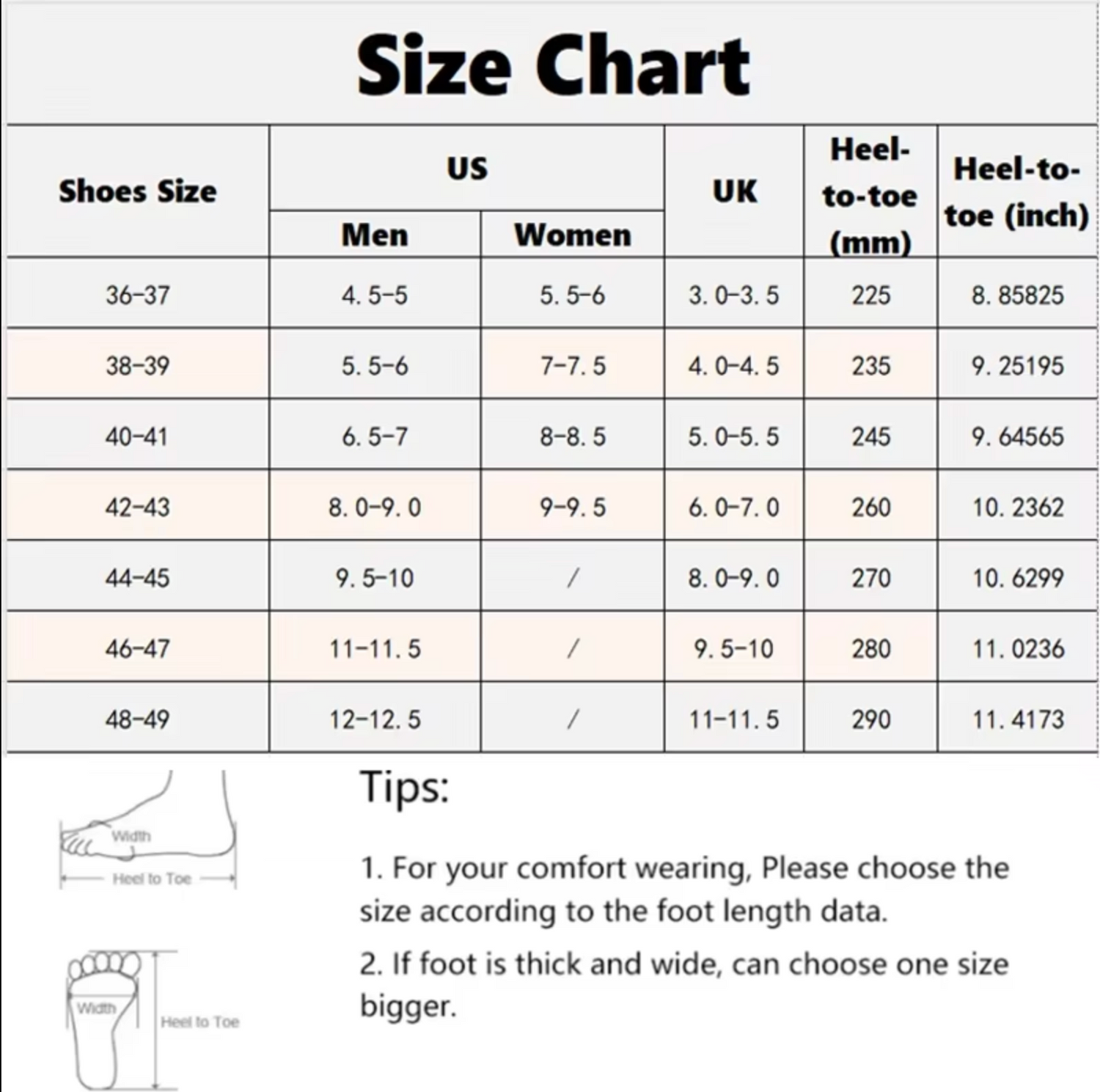 Sizing Chart